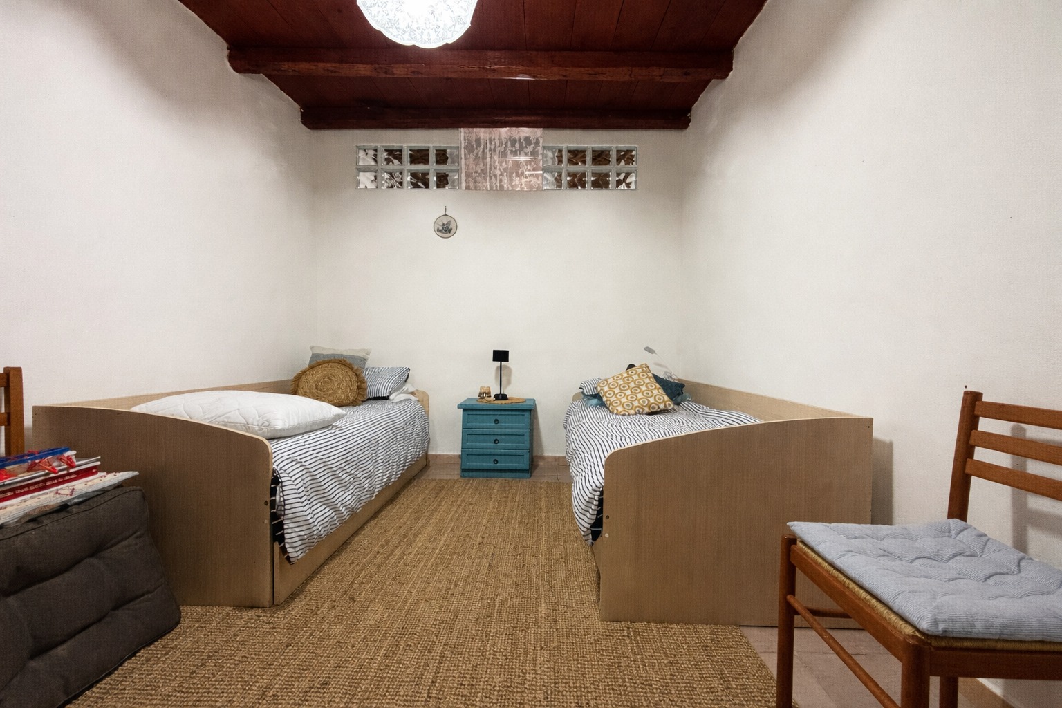 L’abitazione si sviluppa su un unico livello ma presenta una distribuzione interna articolata, caratterizzata dalla presenza di diversi gradini tra i vari ambienti, che creano un movimento interno degli spazi e distinguono le diverse zone della casa.