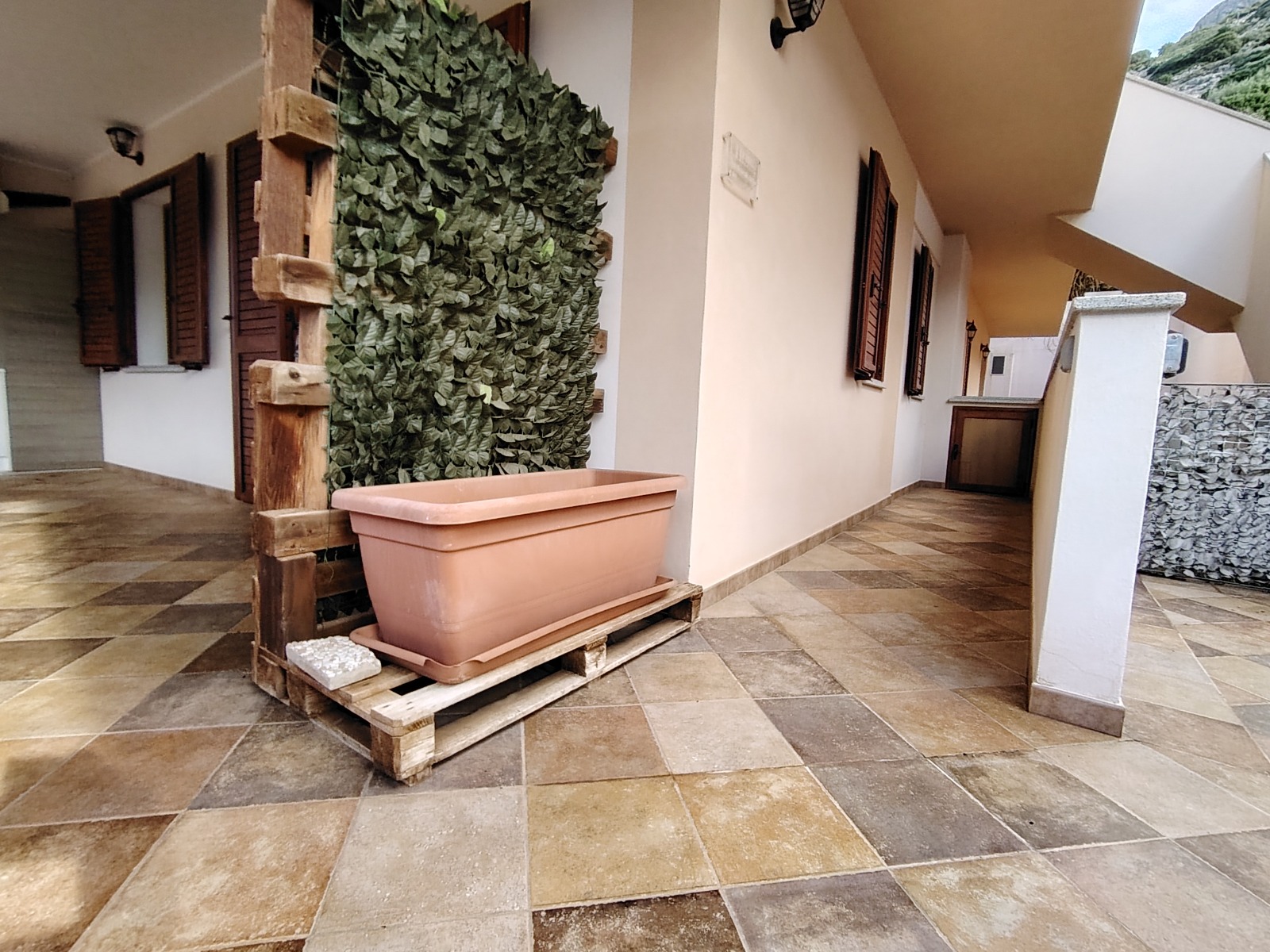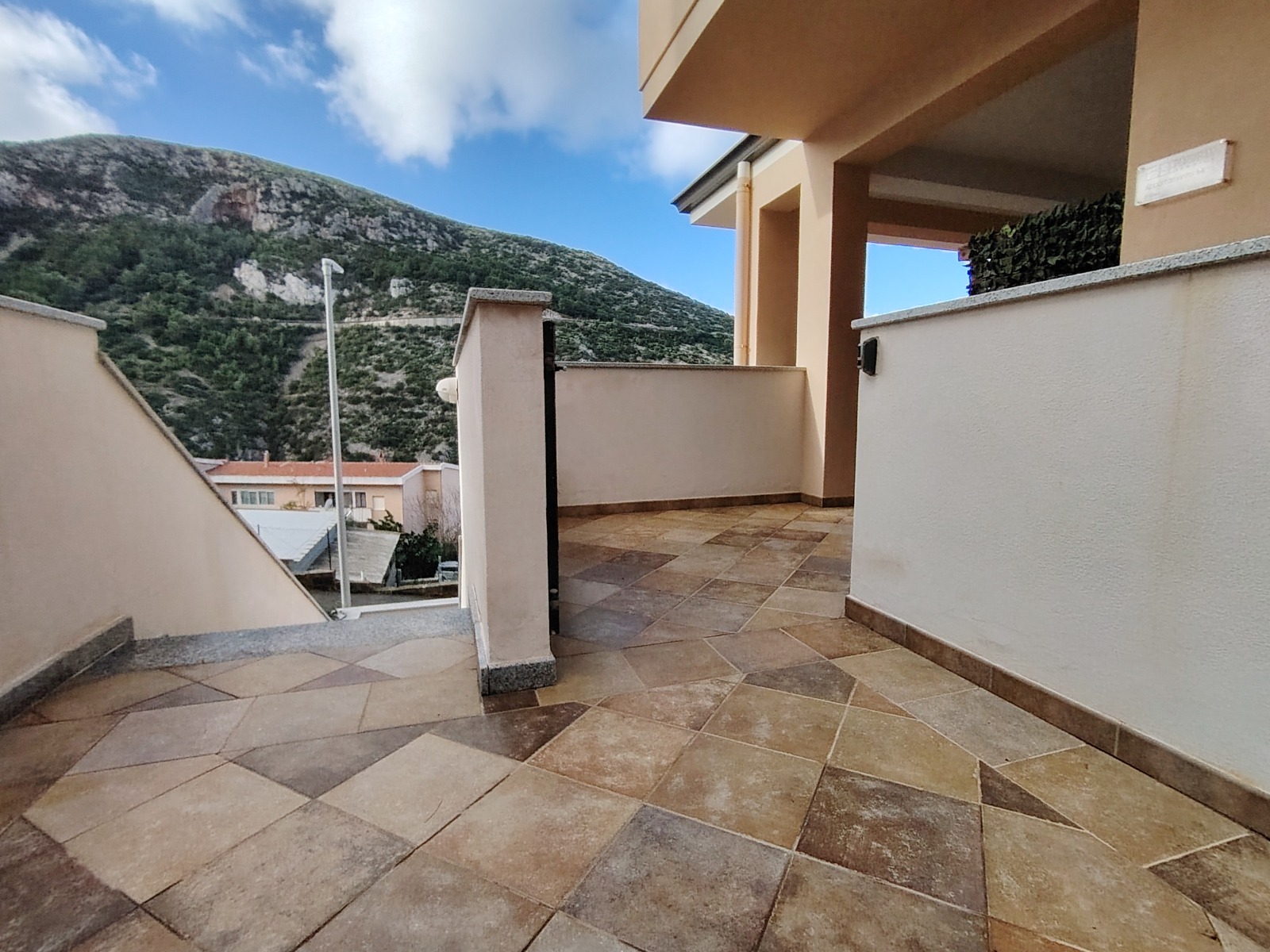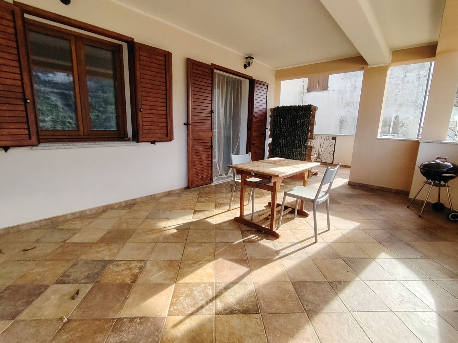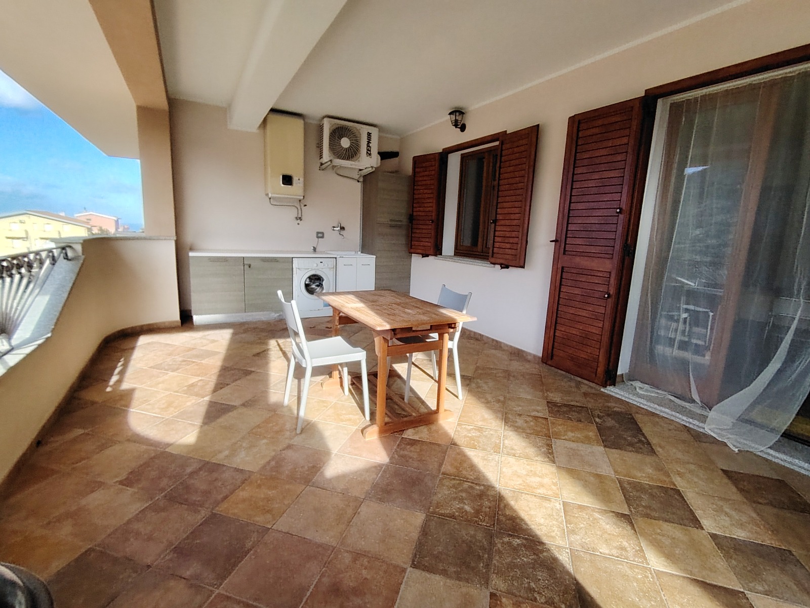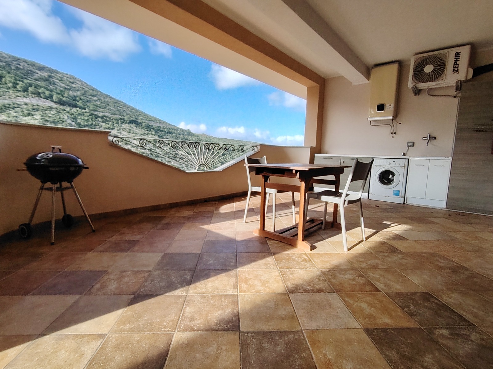 •ampia veranda di pertinenza esclusiva, con affaccio sulla città di Buggerru e vista mare, attrezzata come zona barbecue e lavanderia, ideale per pranzi e cene all’aperto e per svolgere comodamente le faccende domestiche.